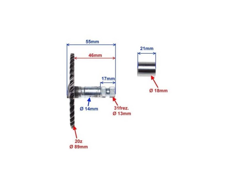 Os s ozubeným kolesom do variátora 4t - 155mm / 16zb rozmery v obrázku
