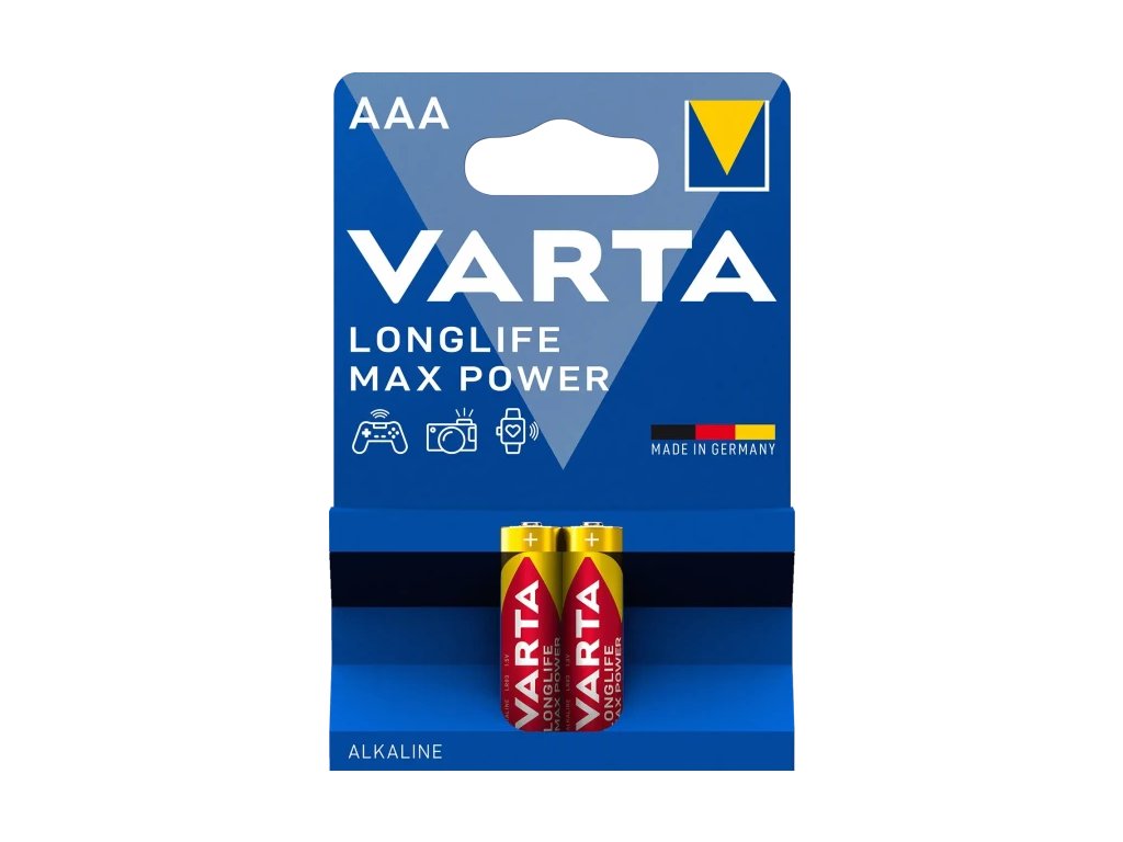 Varta – Longlife Max Power 2 AAA – Alkalické batérie s precíznou energiou pre hi-tech prístroje, ktoré potrebujú presnú energiu pri meniacich sa požiadavkách.