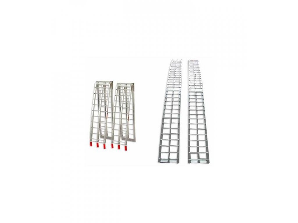Skladací duralové nájazdy, dĺžka 216cm, šírka 28 cm, nosnosť 340 kg / 1 nájazd, 680 kg / 2 nájazdy, dural triedy 6016 / T6, pogumované nájazdové tyčky pre bezpečné uchytenie nájazdov, cena za párViac informácií